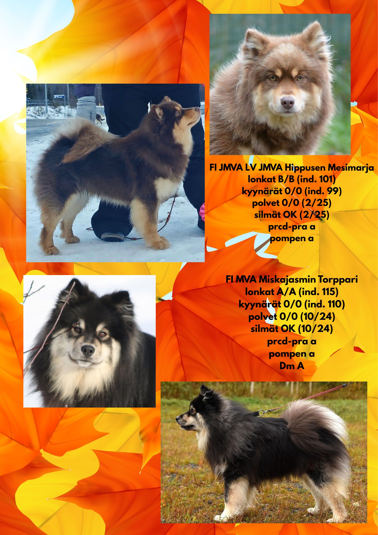 – Toiveena on että meiltä lähtevät pennut sitoudutaan terveystutkimaan vähintäänkin lapinkoirien pevisaan kuuluvien lonkkien, kyynärien ja silmien osalta.